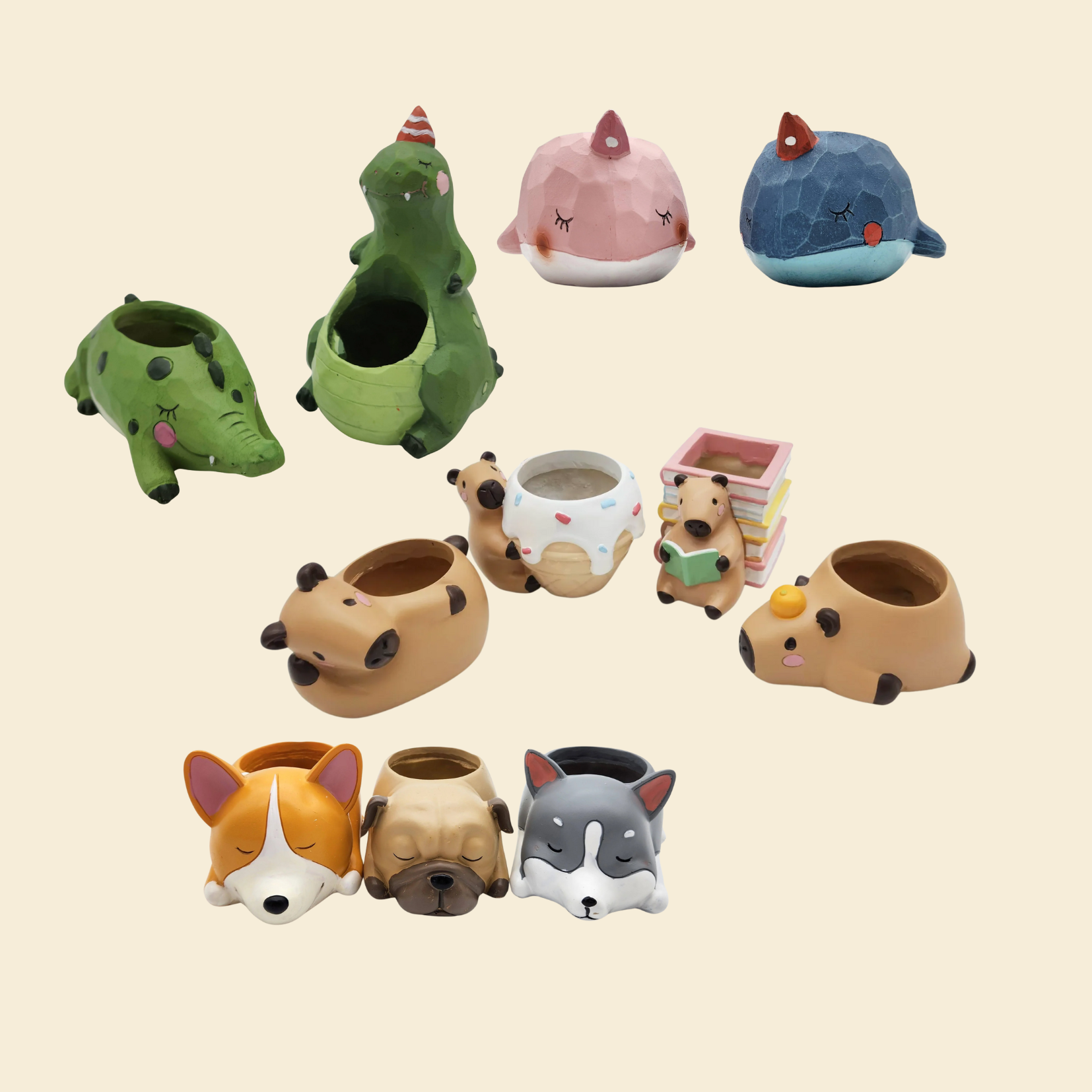 All our best animal planters in one amazing value bundle. Pot up your lil succulents in a mix of dogs, whales, capybaras and reptiles.