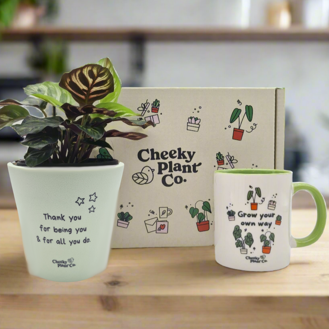 Discover the perfect gift for any occasion with the Positive Motivation - Plant Gift Box. Featuring an indoor plant in positive pot and a Grow Your Own Way mug, it's a thoughtful way to show appreciation and bring positivity to someone's space.